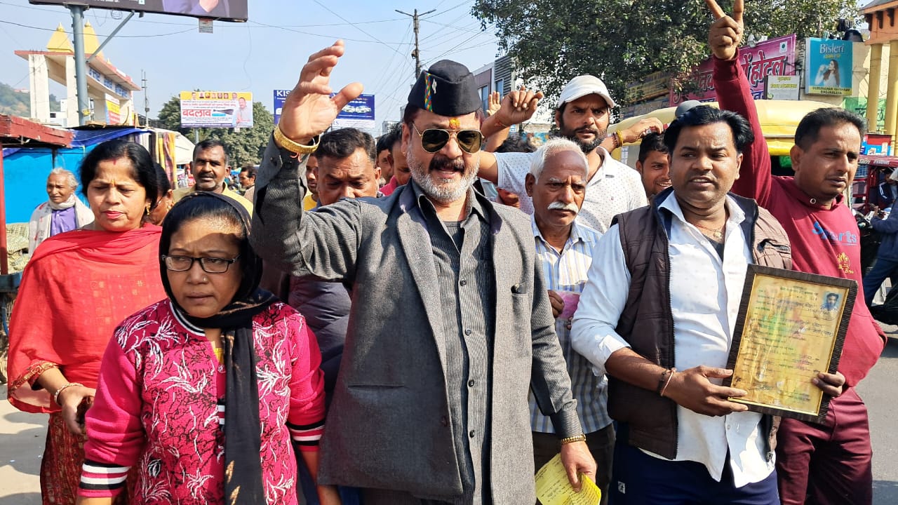 हरिद्वार, 23 नवम्बर। अतिक्रमण के नाम पर शोषण व उत्पीड़न के विरोध में लघु व्यापारियों द्वारा किए जा रहे तीन दिवसीय आंदोलन के अंतिम दिन लघु व्यापारियों ने शिव मूर्ति से सिटी मजिस्ट्रेट कार्यालय तक जुलूस निकालकर प्रदर्शन किया। प्रदर्शन के दौरान लघु व्यापारियों ने नगर निगम प्रशासन द्वारा मुहैया कराए गए लाइसेंस, परिचय पत्र व प्रमाण पत्र को दर्शाते हुए नगर निगम प्रशासन पर उपेक्षा का आरोप लगाया।
