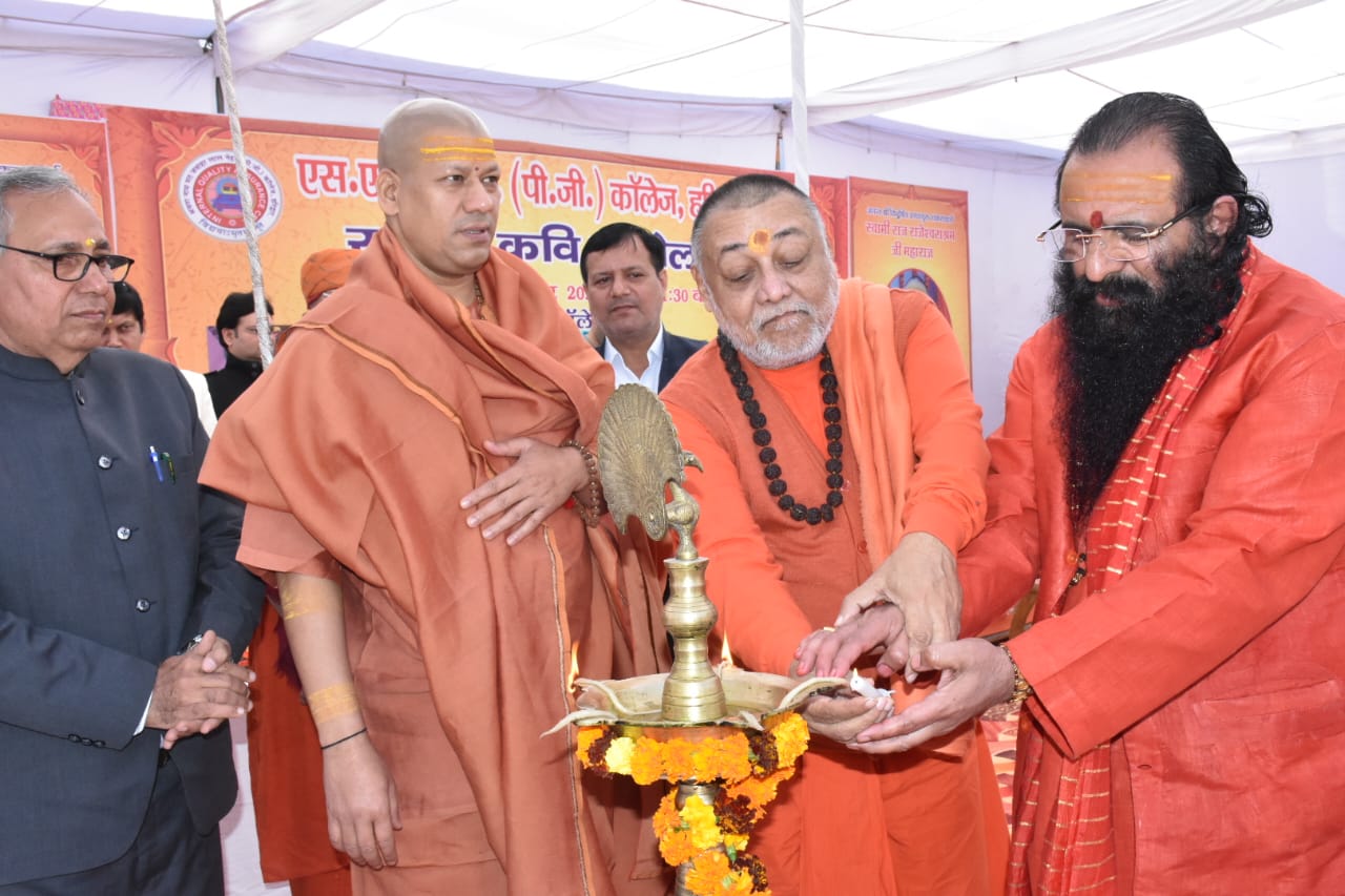 हरिद्वार, 23 दिसम्बर। एसएमजेएन कालेज के प्रांगण में अखिल भारतीय अखाड़ा परिषद एवं कालेज प्रबंध समिति के अध्यक्ष श्रीमहंत रविंद्र पुरी महाराज के सानिध्य में राष्ट्रीय कवि सम्मेलन का आयोजन किया गया। मुख्य अतिथि जगदगुरु शंकराचार्य स्वामी राजराजेश्वराश्रम महाराज, पंचायती अखाड़ा श्री निरंजनी के आचार्य महामंडलेश्वर स्वामी कैलाशानंद गिरि महाराज ,अखाड़ा परिषद एवं कालेज प्रबंध समिति के अध्यक्ष श्रीमहंत रविंद्रपुरी महाराज, विशिष्ठ अतिथि महामंडलेश्वर ललितानंद गिरि महाराज व प्राचार्य डा. सुनील कुमार बत्रा ने दीप प्रज्ज्वलित कर कवि सम्मेलन का शुभारंभ किया।