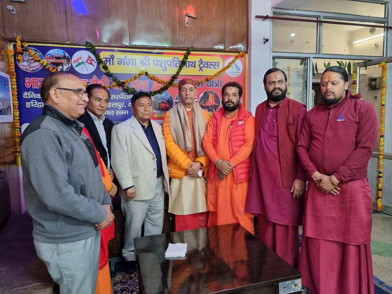 हरिद्वार, 24 फरवरी। आईजी गढ़वाल करण सिंह नगन्याल, स्वामी रविदेव शास्त्री, स्वामी निर्मल दास, स्वामी हरिहरानंद, स्वामी दिनेश दास, स्वामी सुतीक्ष्ण मुनि, स्वामी ज्योर्तिमयानन्द, महंत कपिल मुनि एवं डा.पदम प्रसाद सुवेदी ने संयुक्त रूप से फीता काटकर भारत नेपाल मैत्री बस सेवा शुरू करने वाले श्री पशुपतिनाथ ट्रैवल्स के कार्यालय का उद्घाटन किया। ऋषिकुल चैक पर कार्यालय उद्घाटन के दौरान गढ़वाल आईजी करण सिंह नगन्याल ने कहा कि नेपाल भारत का पड़ोसी मित्र देश है। नेपाल और भारत की संस्कृति में बेहद समानताएं हैं।