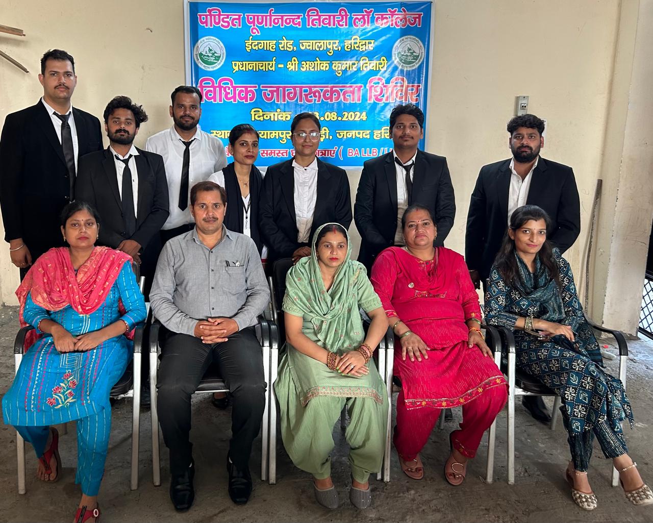 हरिद्वार, 23 अगस्त : ज्वालापुर स्थित पंडित पूर्णानंद तिवारी लॉ कॉलेज के एलएलबी चतुर्थ सेमेस्टर एवं बीए एलएलबी अष्टम सेमेस्टर के छात्र छात्राओं ने ग्राम श्यामपुर कांगड़ी स्थित प्राइमरी पाठशाला में विधिक जागरूकता शिविर का आयोजन किया। विधिक जागरूकता शिविर के माध्यम से आदित्य मोहन, शिवम त्यागी, शिवम पाल, रिंकी शुक्ला, श्वेता, आशीष आदि छात्र-छात्राओं ने ग्रामीणों को भरण पोषण, बाल श्रम कानून, साइबर कानून, श्रम कानून, संपत्ति संबंधी कानून, स्वास्थ्य संबंधी कानून, बाल अधिकार, मानहानि, पोक्सो कानून आदि विषयों पर विधिक जानकारी से अवगत कराया। मंच का संचालन सौरभ मलिक ने किया।
