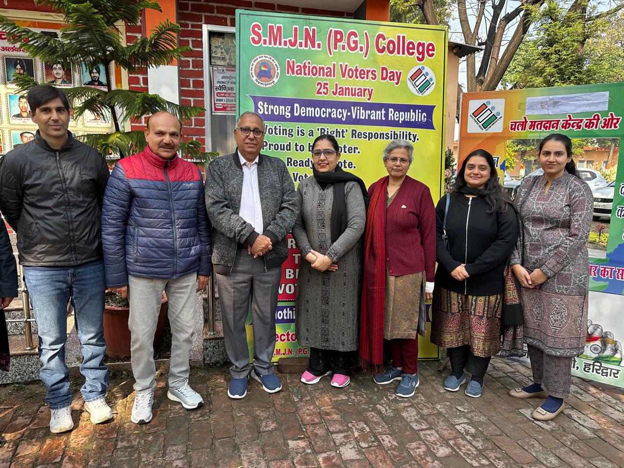 हरिद्वार, 25 जनवरी। राष्ट्रीय मतदाता दिवस के अवसर पर एसएमजेएन कालेज के आन्तरिक गुणवत्ता आश्वासन प्रकोष्ठ, चुनाव साक्षरता क्लब व राष्ट्रीय सेवा योजना (छात्रा इकाई) के संयुक्त तत्वाधान में छात्र छात्राओं, शिक्षकों व कर्मचारियों को प्राचार्य प्रो.सुनील कुमार बत्रा द्वारा मतदान करने की शपथ दिलायी।