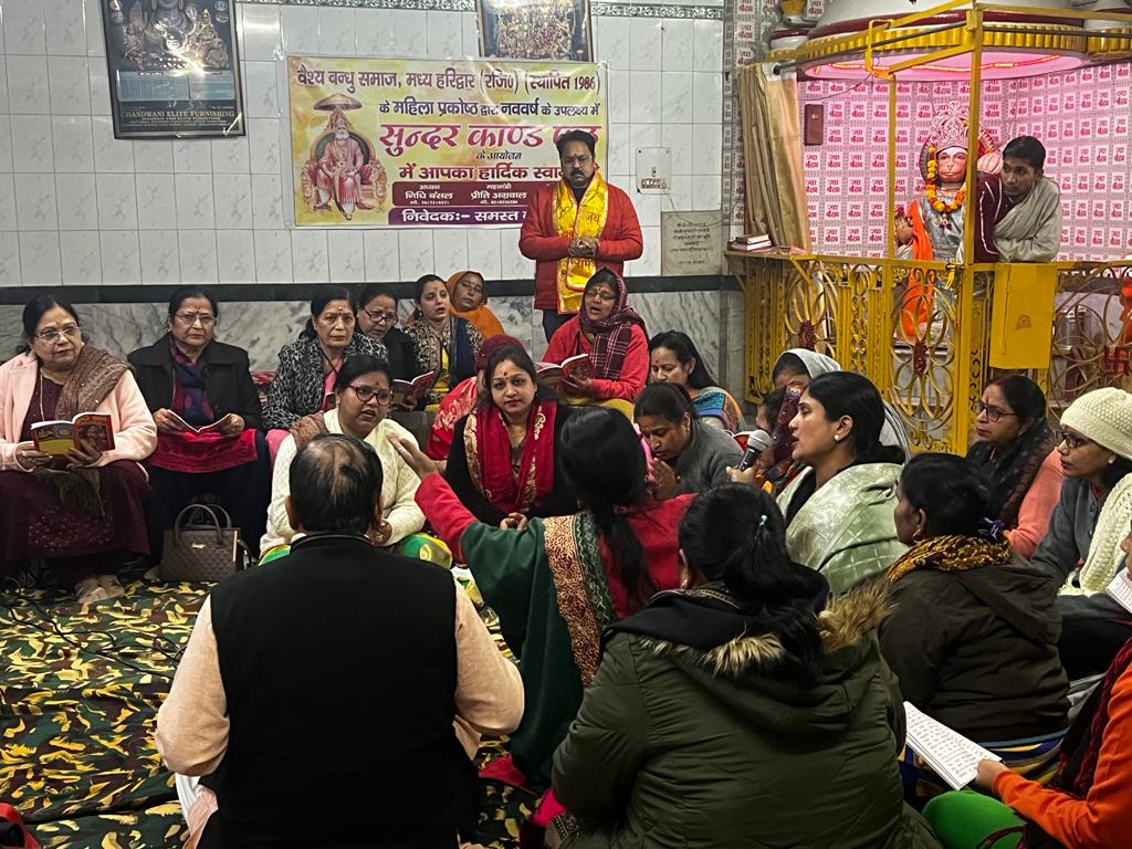 अध्ययन व निधि बंसल ने कहा कि वैश्य बंधु समाज की महिलाएं संगठित होकर सामाजिक गतिविधियों को संचालित कर रही हैं। लगातार समाज सेवा के कार्यो को भी किया जा रहा है। महिला संरक्षण संवर्द्धन के प्रयास सभी को मिलजुल कर करने चाहिए। समाज मे फैली भ्रांतियों को दूर करने का प्रयास करें। युवा पीढ़ी को घार्मिक रीति रिवाजों से अवगत कराएं। अध्यक्ष डा.विशाल गर्ग ने कहा कि महिलाओं द्वारा भक्ति भावना के साथ उत्तराखण्ड राज्य की खुशहाली तथा विश्वशांति के लिए सुंदरकांड पाठ का आयोजन किया गया। सांस्कृति धार्मिक कार्यक्रम लगातार वैश्य बंधु समाज द्वारा किए जा रहे हैं। धार्मिक गतिविधियां ही वैश्य बंधु समाज को पहचान दे रही हैं।