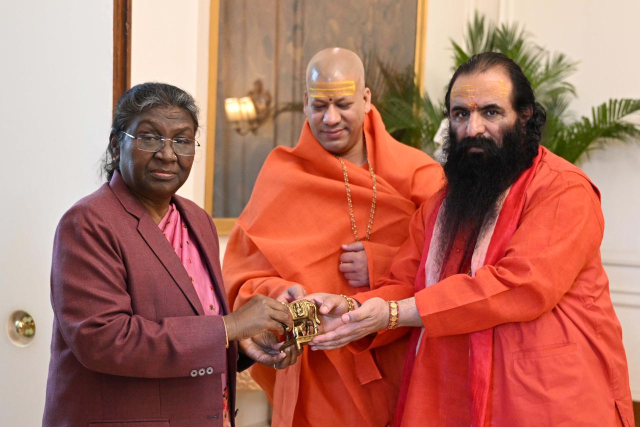 हरिद्वार, 18 दिसम्बर। निंरजन पीठाधीश्वर आचार्य महामण्डलेश्वर स्वामी कैलाशानंद गिरी महाराज एवं अखिल भारतीय अखाड़ा परिषद तथा मां मनसा देवी मंदिर ट्रस्ट के अध्यक्ष श्रीमहंत रविन्द्रपुरी महाराज ने नई दिल्ली में राष्ट्रपति भवन में राष्ट्रपति द्रौपदी मुर्मु से भेंट की। स्वामी कैलाशानंद गिरी महाराज एवं श्रीमहंत रविन्द्रपुरी महाराज ने मां दक्षिण काली के आशीर्वाद स्वरूप राष्ट्रपति द्रौपदी मुर्मु को मां की चुनरी, नारियल एवं गंगाजली भेंट की एवं राष्ट्र की उन्नति खुशहाली की मंगलकामना की।