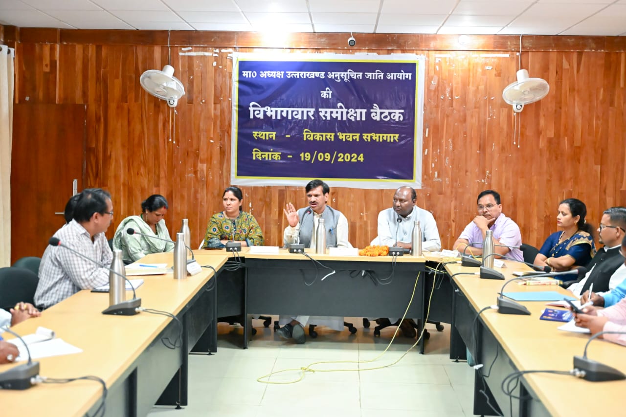 बैठक की समीक्षा करते हुए अनुसूचित जाति आयोग के अध्यक्ष ने उपस्थित अधिकारियों को निर्देशित करते हुए कहा कि केंद्र एवं राज्य सरकार द्वारा अनुसूचित जाति व्यक्तियों के लिए जो भी योजनाएं संचालित हो रहीं हैं उन योजनाओं का लाभ उन तक उपलब्ध हो, इस दिशा में सभी अधिकारी धरातल पर आपसी समन्वय के साथ कार्य करते हुए योजनाओं का लाभ उन तक पहुंचाना सुनिश्चित करें। इसके लिए उन्होंने सभी अधिकारियों को हिदायत दी है कि अंतिम छोर में खड़े व्यक्ति को प्रथम पायदान पर लाने के लिए तथा उसे विकास योजनाओं की मुख्य धारा से जोड़ते हुए उसे आत्मनिर्भर बनाने की दिशा में सभी अधिकारी अपने दायित्वों का निर्वहन करें। उन्होंने कहा कि केंद्र एवं राज्य सरकार द्वारा जो भी योजनाएं संचालित हो रही हैं उन योजनाओं को व्यापक रूप से प्रचार-प्रसार कराया जाए। जिससे कि अनुसूचित जाति लोगों के लिए जो भी योजनाएं संचालित हो रही हैं उसका लाभ उनको उपलब्ध हो सके। उन्होंने महाविद्यालय एवं इंटर काॅलेजों में भी शिविर/सेमिनार आयोजित करने के भी निर्देश दिए जिससे कि छात्र-छात्राओं के माध्यम से संचालित योजनाओं की जानकारी भी उपलब्ध कराई जाए। उन्होंने निर्देश दिए हैं कि उद्योग विभाग, डेयरी, मत्स्य, उरेड़ा, पशुपालन, उद्यान, समाज कल्याण विभाग आदि विभागों के माध्यम से जो भी योजनाएं संचालित हो रही हैं उन योजनाओं की जानकारी उपलब्ध कराते हुए उन्हें लाभान्वित करने के निर्देश दिए।