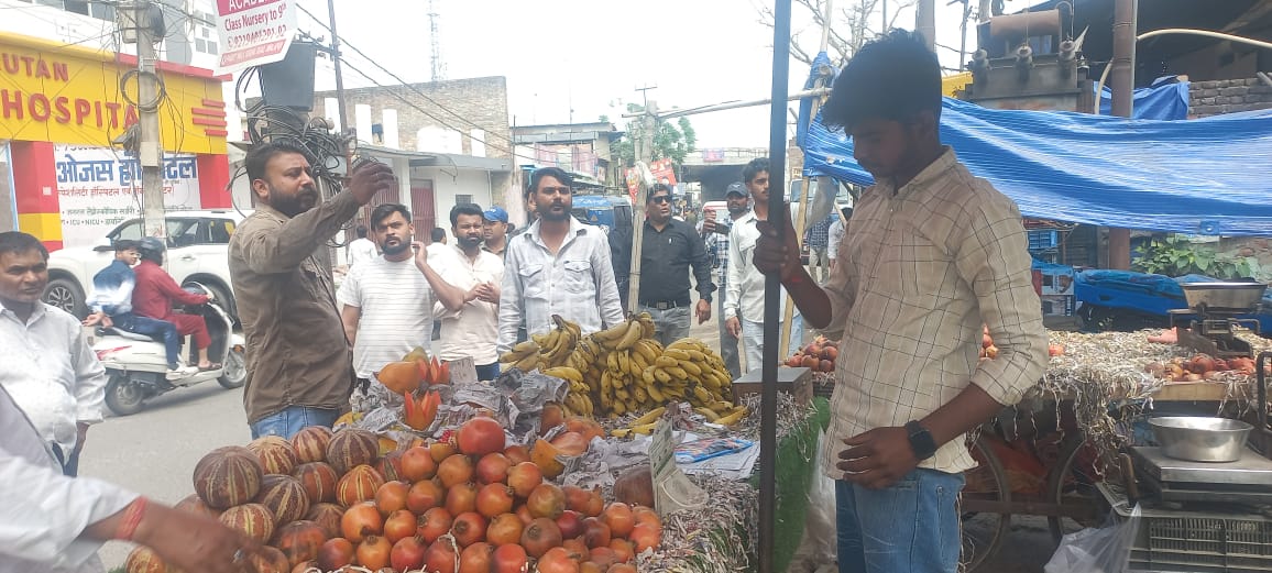 नगर निगम और पुलिस टीम ने हरिलोक में सब्जी मंडी के पास से हटवाया अतिक्रमण