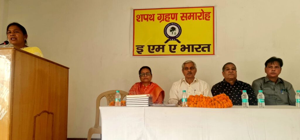 हरिद्वार, 4 मई। इएमए हरिद्वार के नवनिर्वाचित पदाधिकारियों का शपथ ग्रहण समारोह बालाजी इंस्टीट्यूट ऑफ अल्टरनेटिव मेडिकल साइंस में आयोजित किया गया। इएमए के राष्ट्रीय अध्यक्ष डा.केपी एस चौहान तथा प्राचार्या डा.वी एल अलखनिया ने नवनिर्वाचित पदाधिकारियों नवनिर्वाचित जिलाध्यक्ष डा.सुनील कुमार अग्रवाल, महामंत्री डा.आदेश शर्मा, कोषाध्यक्ष डा. हीना कुशवाहा, प्रचार मंत्री डा.लक्ष्मी, ऑडिटर डा.अशोक कुमार-आडिटर, उपाध्यक्ष डा.चांद उस्मान, सचिव डा.गुलाम साबिर, मीडिया प्रभारी डा.आफाक अली, प्रवक्ता डा.अंशुल सागर कौशिक, एडवाइजर डा.बी.बी. कुमार को पद एवं गोपनीयता की शपथ दिलाई।