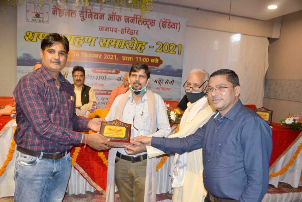 पत्रकारों को समाज का महत्वपूर्ण हिस्सा बताते हुए उन्होंने कहा कि सरकार राज्य के विकास के लिए हर संभव प्रयास लगातार कर रही है । पत्रकारों से उन्होंने इस दिशा में सतत सक्रिय सहयोग का आग्रह किया। कैबिनेट मंत्री गणेश जोशी गुरुवार को होटल गैंगेज रिवेरा कनखल में नेशनल यूनियन ऑफ जर्नलिस्ट इंडिया हरिद्वार की जिला कार्यकारिणी के शपथ ग्रहण समारोह को मुख्य अतिथि के रूप में संबोधित कर रहे थे । उन्होंने नवनिर्वाचित अध्यक्ष धर्मेंद्र चौधरी और महामंत्री सुनील पाल को पद एवं गोपनीयता की शपथ दिलाई।