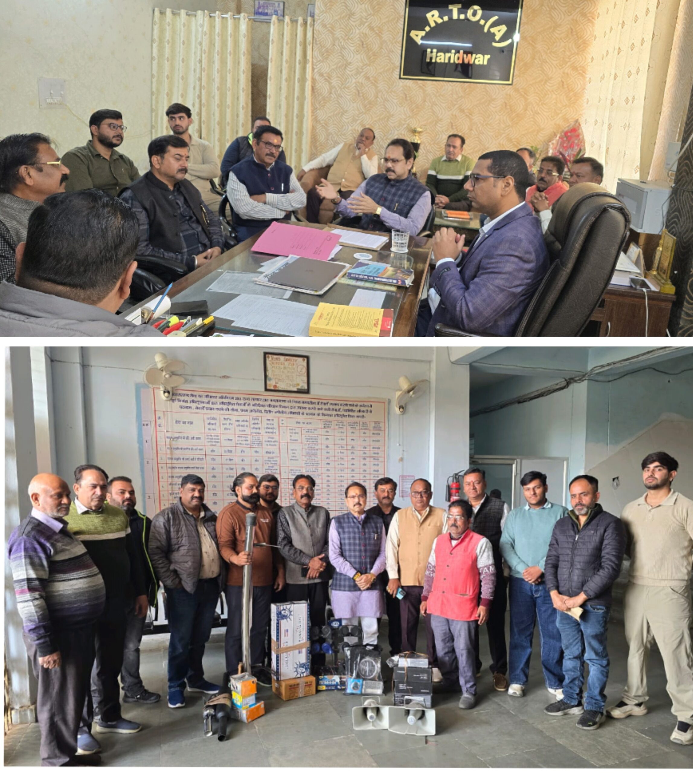 हरिद्वार, 26 नवम्बर। प्रतिबंधित ऑटो पार्टस की बिक्री पर परिवहन विभाग द्वारा दुकानों पर छापेमारी कर सामान जब्त करने को लेकर बुधवार को प्रांतीय नगर उद्योग व्यापार मंडल के जिला अध्यक्ष डा.विशाल गर्ग के नेतृत्व में व्यापारियों ने एआरटीओ निखिल शर्मा से वार्ता की। इस दौरान अवधूत मंडल व्यापार मंडल के व्यापारी भी शामिल रहे।
