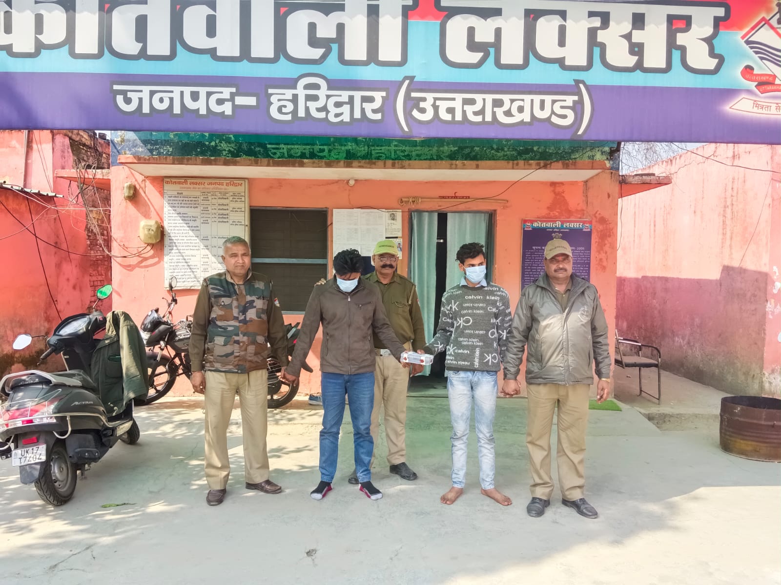 हरिद्वार, 15 फरवरी। लकसर कोतवाली पुलिस ने राह चलते व्यक्ति से मोबाइल छीनने के मामले में दो लोगों को गिरफ्तार किया है। आरोपियों के कब्जे से छीना गया मोबाइल और घटना में प्रयुक्त बाइक बरामद हुई है। ग्राम मथाना खानपुर निवासी सूरज ने लकसर पुलिस को शिकायत देकर दो अज्ञात बाइक सवारों पर उसका मोबाइल छीनने का आरोप लगाते हुए मुकद्मा दर्ज कराया था। जांच पड़ताल में जुटी पुलिस टीम ने मुखबिर की सूचना पर दो संदिग्धों सगुन पुत्र स्व.पिन्टू व अनुज पुत्र स्व. मामचन्द निवासी अकोढा खुर्द लक्सर को गिरफ्तार कर लिया। पूछताछ के बाद उनके के कब्जे से लूटा गया मोबाइल फोन व घटना में प्रयुक्त मोबाइल फोन बरामद किया गया। पुलिस टीम में एसआई हरीश गैरोला, कांस्टेबल संदीप रावत व सौदीश कुमार शामिल रहे।