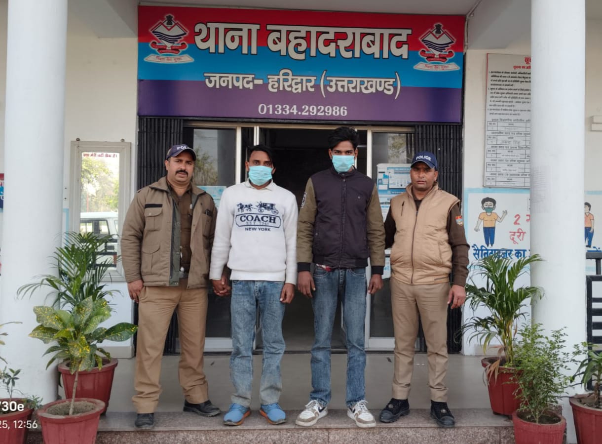 हरिद्वार, 16 दिसम्बर। ई-रिक्शा व टैम्पों की बैटरी आदि चोरी करने के मामले मे कार्रवाई करते हुए थाना बहादराबाद पुलिस ने 2 आरोपियो को गिरफ्तार किया है। आरोपियांे के कब्जे से चोरी की ई-रिक्शा बरामद हुई है। सोमवार को बहादराबाद निवासी मुन्तजीर अहमद ने ई रिक्शा व टैम्पो की बैटरी व अन्य सामान चोरी कर लिए जाने के संबंध में मुकद्मा दर्ज कराया था। मुकद्मा दर्ज करने के बाद जांच पड़ताल करते हुए पुलिस ने रात्रि गश्त के दौरान ज्वालापुर नहर पटरी के पास से घटना मे सलिंप्त दो व्यक्तियों शाहनवाज उर्फ प्रिन्स पुत्र राजा खान निवासी मस्जिद वाली गली कस्बा व थाना बहादराबाद व सलमान पुत्र इरशाद ग्राम मरगूबपुर बहादराबाद चोरी किये गए ई रिक्शा समेत गिरफ्तार कर लिया। आरोपी पूर्व मे भी चोरी के मामले मे जेल जा चुके हैं। पुलिस टीम में एसआई अमित नौटियाल, कांस्टेबल शाह आलम, मदनपाल, होमगार्ड सुशील कुमार व पीआरडी जवान अरविन्द शामिल रहे।