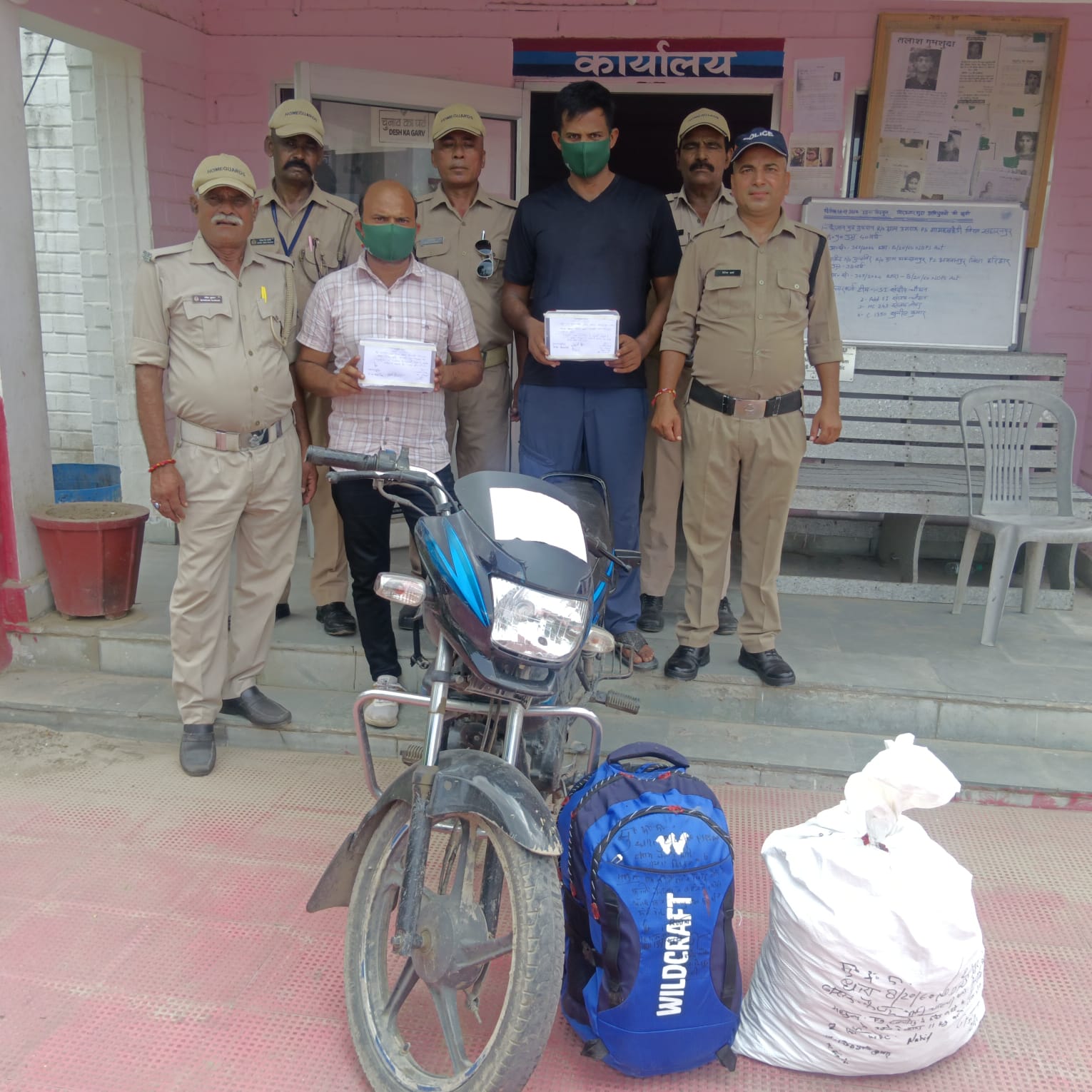 हरिद्वार, 16 जुलाई। थाना सिडकुल पुलिस व एएनटीएफ की टीम ने बाईक से गांजा तस्करी कर रहे दो तस्करों को गिरफ्तार किया है। आरोपियों के कब्जे से 21 किलो 500 ग्राम गांजा बरामद हुआ है। पुलिस ने तस्करी में प्रयुक्त बाइक को भी जब्त कर लिया है। मादक पदार्थो की तस्करी पर रोक लगाने के लिए गठित थाना पुलिस व एएनटीएफ टीम ने सिडकुल में डेंसों चौक के पास चेकिंग के दौरान बाइक से गांजे की खेप लेकर जा रहे दो युवकों शहजान पुत्र गुफरान निवासी ग्राम उगराऊ थाना गागलहेड़ी जिला सहारनपुर उत्तर प्रदेश व नाहिद पुत्र मुंतज़िर निवासी ग्राम मक्खनपुर थाना भगवानपुर हरिद्वार को गिरफ्तार कर लिया। आरोपियों के खिलाफ एनडीपीएस एक्ट के मुकद्मा दर्ज किया गया है। पुलिस टीम में एसआई संदीप चौहान, एएसआई संजय चौहान, हेडकांस्टेबल संजय तोमर, कांस्टेबल सुनील कुमार, एएनटीएफ प्रभारी नरेंद्र बिष्ट, एसआई रंजीत तोमर, हेडकांस्टेबल सुनील, राजवर्धन व मुकेश शामिल रहे।