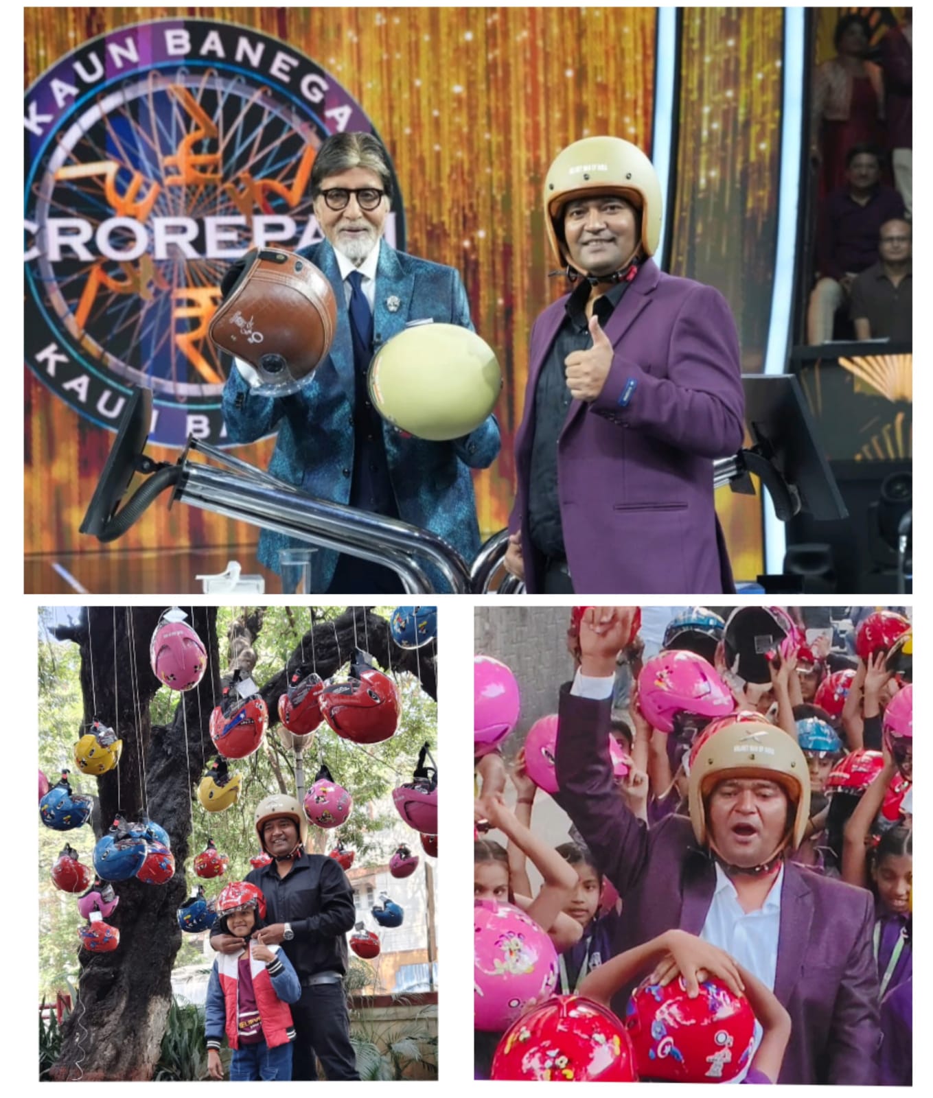 हाल ही में हेलमेट मैन ऑफ इंडिया की उपस्थिति लोकप्रिय शो KBC में भी चर्चा का विषय बनी।अमिताभ बच्चन उनसे बेहद प्रभावित हुए और कार्यक्रम में हेलमेट उपहार मिलने पर भावुक हो उठे। अगले ही दिन उन्होंने अपने ब्लॉग में लिखा—
