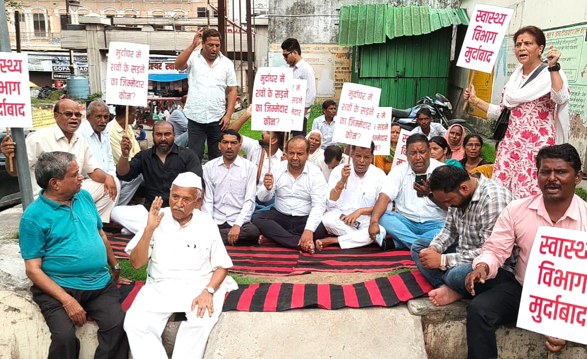 हरिद्वार, 25 जून। जिला चिकित्सालय की मोर्चरी में अव्यवस्थाओं व लापरवाही का आरोप लगाते हुए महानगर कांग्रेस कमेटी ने अस्पताल परिसर में धरना प्रदर्शन किया। जिला महानगर कांग्रेस अध्यक्ष अमन गर्ग और स्वतंत्रता सेनानी उत्तराधिकारी प्रकोष्ठ के अध्यक्ष मुरली मनोहर ने कहा कि जिला चिकित्सालय के मुर्दाघर में शवों को रखने में लापरवाही बरती जा रही है। हाल ही में ज्वालापुर निवासी एक व्यक्ति का शव 11 दिन मोर्चरी में रखा रहा। मृतक के परिजन के तीन बार मोर्चरी पहुंचे लेकिन उन्हें कोई जानकारी नहीं दी गयी। उन्होंने कहा कि दोषी अधिकारियों और कर्मचारियों पर कड़ी कार्रवाई करते हुए बर्खास्त किया जाए।
