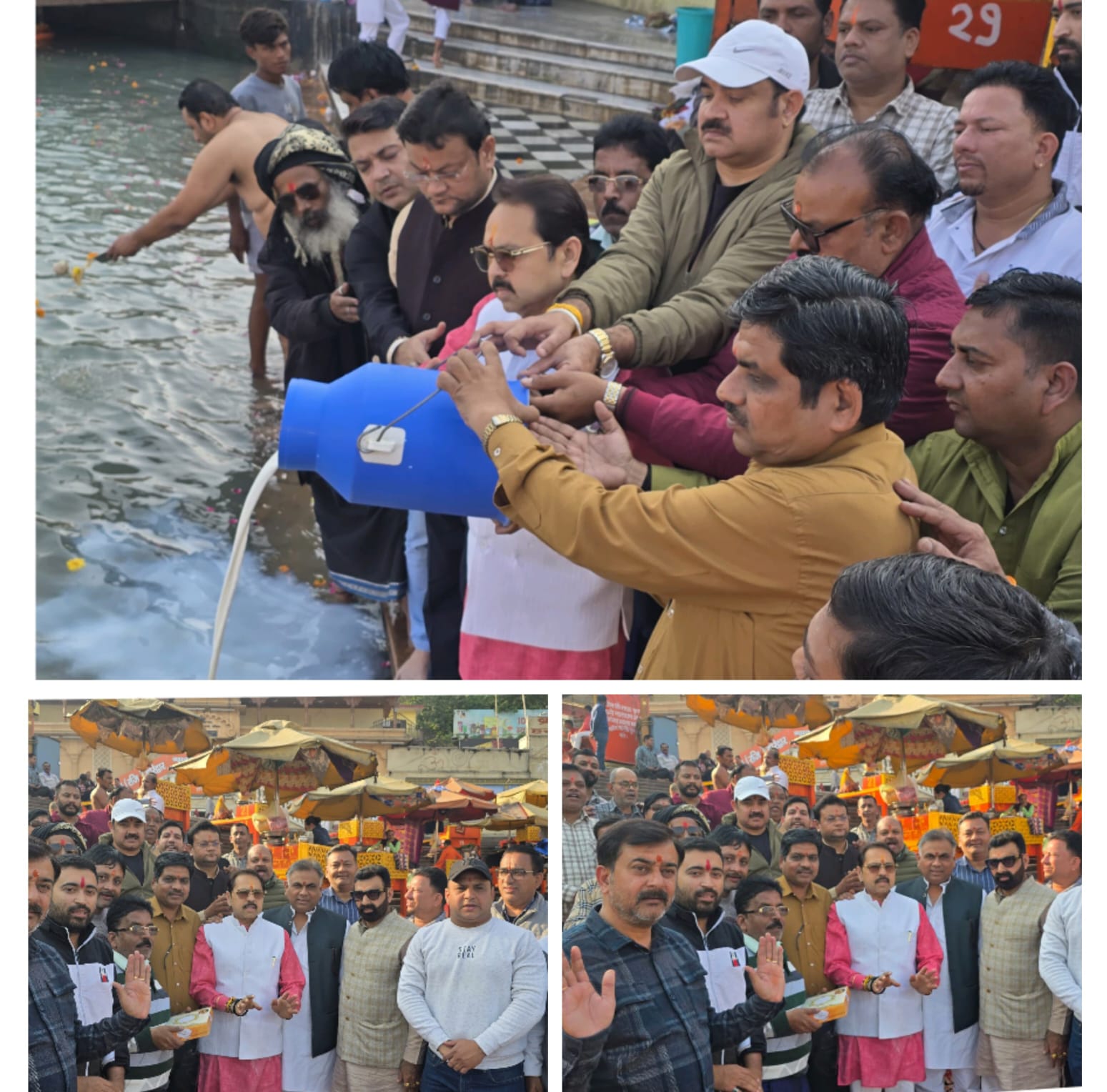 हरिद्वार, 20 नवम्बर। प्रांतीय नगर उद्योग व्यापार मंडल के जिला अध्यक्ष विशाल गर्ग ने नवनियुक्त जिला कार्यकारिणी के साथ हरकी पैड़ी पर गंगा पूजन एवं दुग्धाभिषेक कर मां गंगा से आशीर्वाद लिया। श्री गंगा सभा के अध्यक्ष नितिन गौतम ने गंगा पूजन करने हरकी पैड़ी पहुंची जिला कार्यकारिणी का फूलमाला पहनकर स्वागत किया।