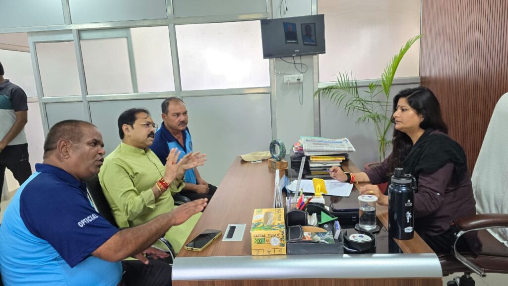 हरिद्वार, 22 अगस्त। वरिष्ठ भाजपा नेता डा.विशाल गर्ग ने जिला क्रीड़ा अधिकारी शबाली गुरूंग से भेंटवार्ता कर खेल प्रतियोगिताओं को लेकर चर्चा की। रोशनाबाद स्टेडियम में खिलाड़ियों की चयन प्रक्रिया चल रही थी। लेकिन बालिकाओं की संख्या काफी कम होने से खिलाड़ियों को अब प्रोत्साहित करने के लिए जनजागरूकता अभियान चलाए जाने पर चर्चा की गयी। डा.विशाल गर्ग ने कहा कि राज्य के मुख्यमंत्री पुष्कर सिंह धामी प्रतिभावान खिलाड़ियों को प्रोत्साहित करने के लिए छात्रवृत्ति सहित कई योजनाएं चला रहे हैं।